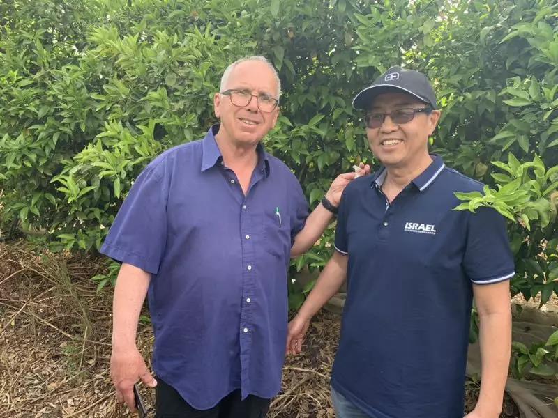 余濤(右)與以色列柑橘專(zhuān)家沙隆合影