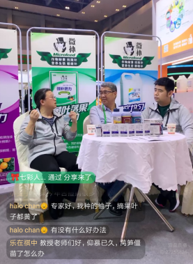 13日上午,微補公司首席植物營(yíng)養專(zhuān)家余濤余教授,通過(guò)直播,帶領(lǐng)大家參觀(guān)展會(huì ),與各領(lǐng)域農業(yè)相關(guān)技術(shù)人員進(jìn)行交流