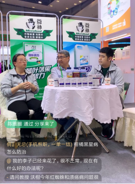 下午,微補攜手先正達聯(lián)合活動(dòng),在展廳現場(chǎng),對先正達專(zhuān)家進(jìn)行采訪(fǎng),對微補生防三劍客+先正達金棠 苯·嘧聯(lián)合產(chǎn)品套餐進(jìn)行介紹,對柑橘、獼猴桃、蔬菜等作物近期營(yíng)養、病蟲(chóng)害問(wèn)題進(jìn)行分析,提供解決方案。