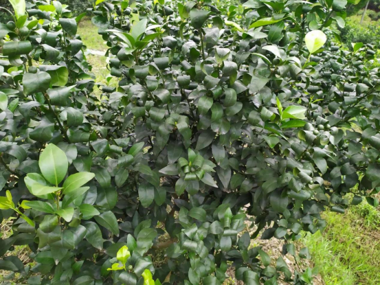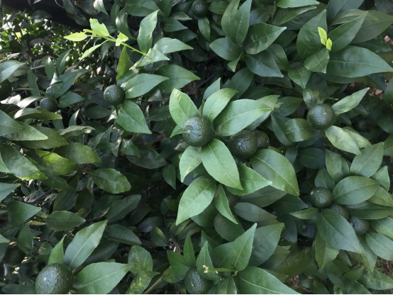 澇害已使部分柑橘根系受損,而之后的連續高溫根系在未恢復情況下再受重創(chuàng ),肥水吸收能力大幅下滑。葉片偏少黃弱,樹(shù)體累積的有機養分相對較少,難以供給果實(shí)膨大、梢枝生長(cháng)所需,導致膨果慢、果小。