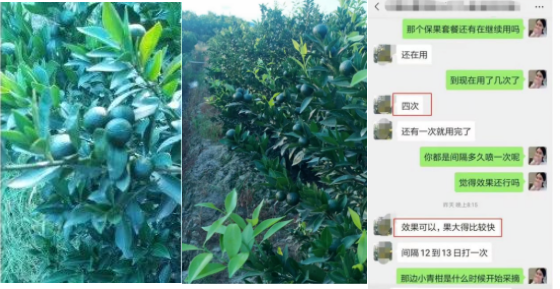 廣東譚師傅:“我今年3月份開(kāi)始用微補,就使用了微補保果套餐,微補果力+微補硼力+微補OM45有機精華噴了4次,12-13日打一次,新會(huì )柑果個(gè)非常均勻,果個(gè)也大的快,保果保得很好,現在我還繼續使用。”