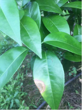 夏季雨后發(fā)生最多的病害,高溫高濕天氣和臺風(fēng)暴雨后(果樹(shù)會(huì )出現大量傷口),病菌伺機侵入,主要危害植株的葉片和果實(shí),防治不及時(shí)會(huì )造成柑橘大量出現落葉、枯梢、干枝、病果等問(wèn)題,再加上柑橘潰瘍病具有爆發(fā)性強、傳播速度快、病害后果重的特點(diǎn),容易發(fā)生惡性循環(huán)?,F在要重點(diǎn)防控潰瘍病,預防雨后高溫大爆發(fā),還要防止潰瘍病上果,減少對果實(shí)的影響。
